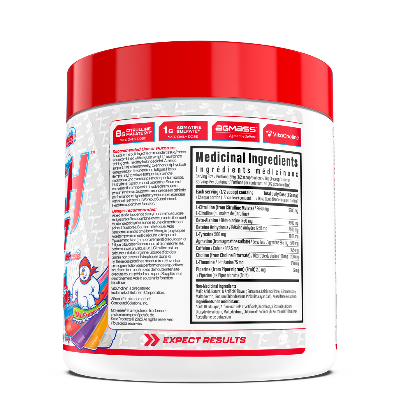 Il apporte une énergie soutenue avec 325 mg de caféine, améliore la circulation et les pompes musculaires avec 8 g de citrulline malate, retarde la fatigue avec 3,5 g de bêta-alanine et optimise la force et la concentration grâce à la bétaïne, la choline et la tyrosine.
