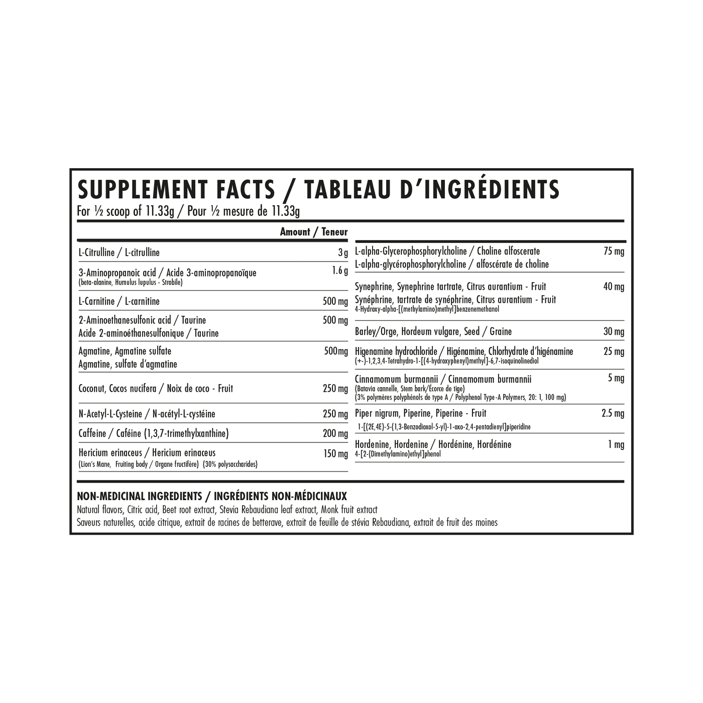 Tu profites d’une formule efficace, sans ingrédients inutiles ni stimulants excessifs. Juste ce qu’il faut pour t’amener au niveau supérieur. Il t’aide à connecter ton corps et ton mental pour des entraînements solides.