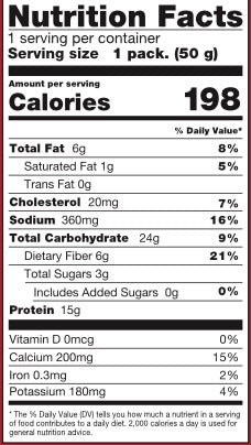 Chaque sac de 50 g contient 15 g de protéines, 6 g de fibres et seulement 3 g de sucres. C’est l’allié idéal pour soutenir ton alimentation tout en te faisant plaisir.