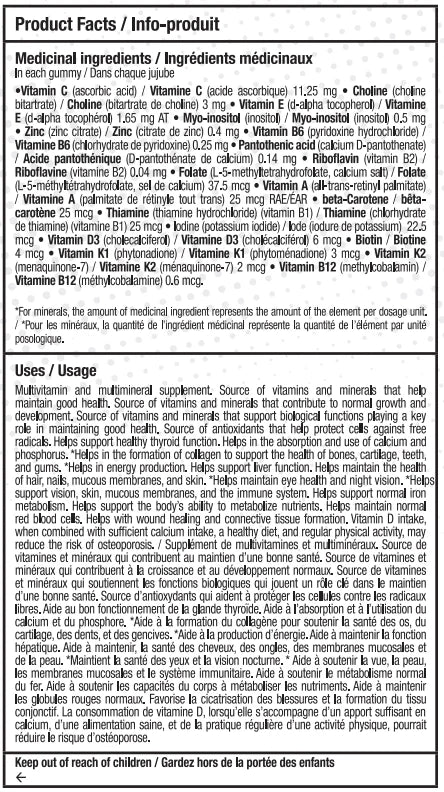 These multivitamins contribute to immune system support and energy metabolism through a combination of key vitamins, including vitamin C and several B vitamins . They also help maintain healthy bones and teeth , as well as normal vision . Their formulation helps support normal growth and development and promotes overall well-being.