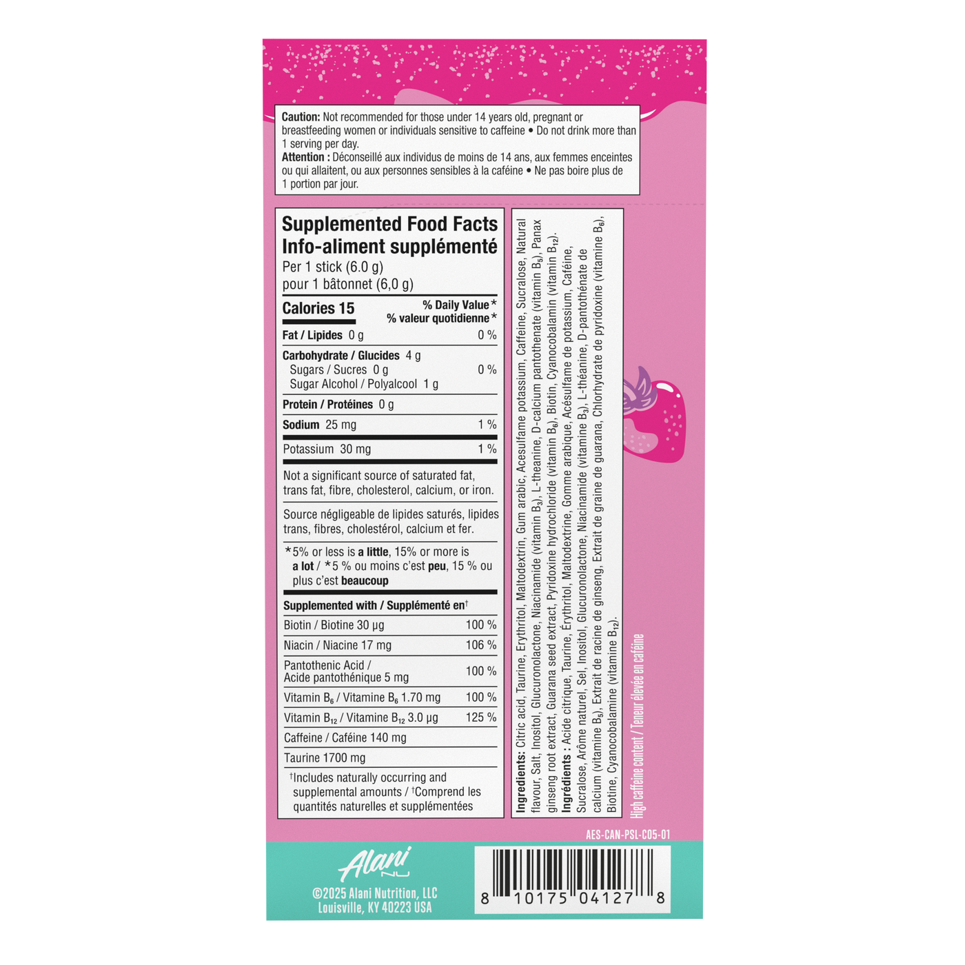 Alani Nu Energy Drink Mix is a convenient, on-the-go energy drink mix. Its formula combines natural caffeine, taurine, ginseng, guarana, and a vitamin B complex to deliver a real energy boost. Low in calories, it has no added sugar , is gluten-free, and is suitable for a vegan diet.