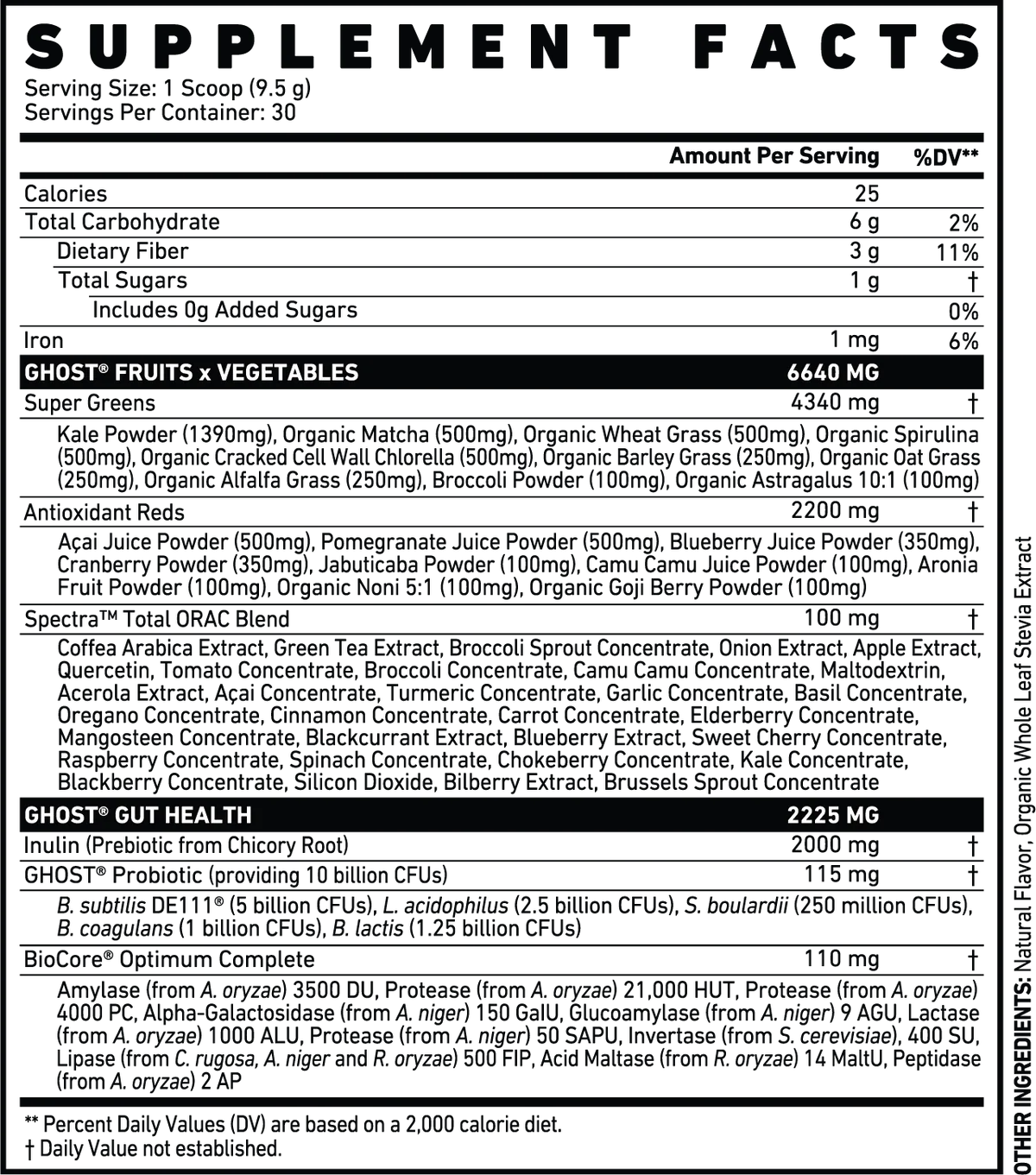 GHOST® GREENS combines 19 individually sourced greens and reds with a full 100 mg dose of Spectra™, prebiotics, 10 billion CFU of probiotics, and the super-premium BioCore® Optimum complete digestive enzymes... plus, we've partnered with the legends at ONE TREE PLANTED to plant a tree for every unit sold. 1 container = 1 tree!
