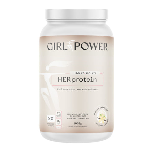 HERprotein is a whey protein isolate specifically designed to support muscle growth and provide natural energy. Each serving contains 27g of pure protein , with no added sugar and no fat , for a total of 130 calories . Made from high-quality whey isolate , GMO-free and gluten-free.