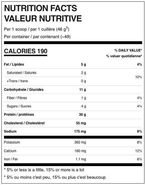 Mélange une portion (un sachet) dans 250 à 300 ml d’eau froide ou de lait, secoue et savoure. À consommer après l’entraînement, en collation ou dès que tu veux un petit boost protéiné.