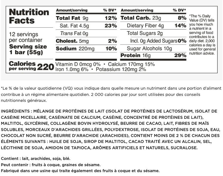 Chaque Barre Protéinée Tendre de 55 g contient 16 g de protéines et ne contient aucun sucre ajouté. Elle est conçue pour offrir une texture tendre et agréable, avec un profil nutritionnel équilibré qui convient parfaitement comme collation protéinée au quotidien.