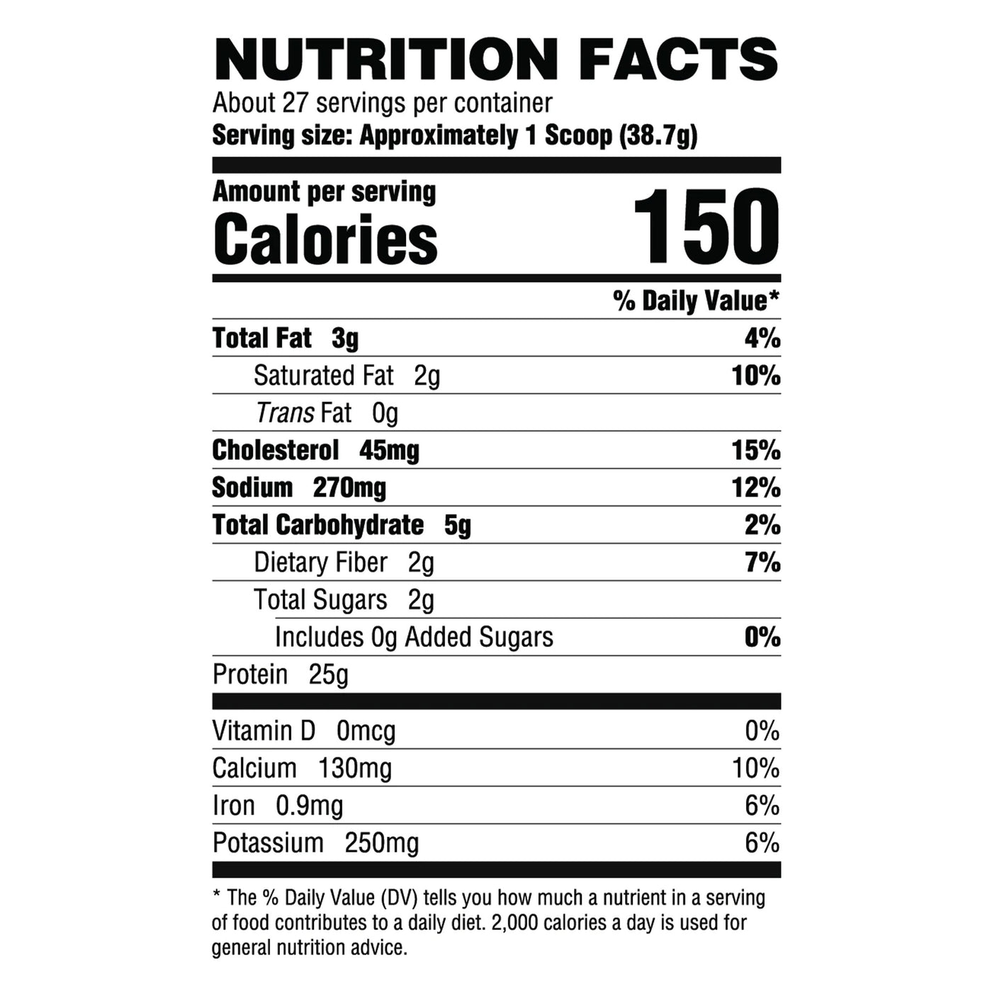 Chaque portion fournit 25 g de protéines de lactosérum, avec l’isolat comme source principale, pour stimuler la croissance et la récupération musculaire. La formule est enrichie en fibres prébiotiques pour la digestion et la santé intestinale, ainsi qu’en MCT (triglycérides à chaîne moyenne) qui soutiennent le métabolisme et apportent une énergie rapidement disponible.